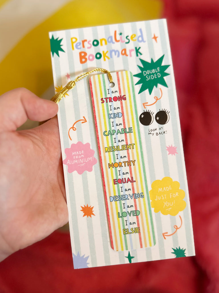 Personalised Rainbow Stripes Pastel Double-sided Aluminium Bookmark