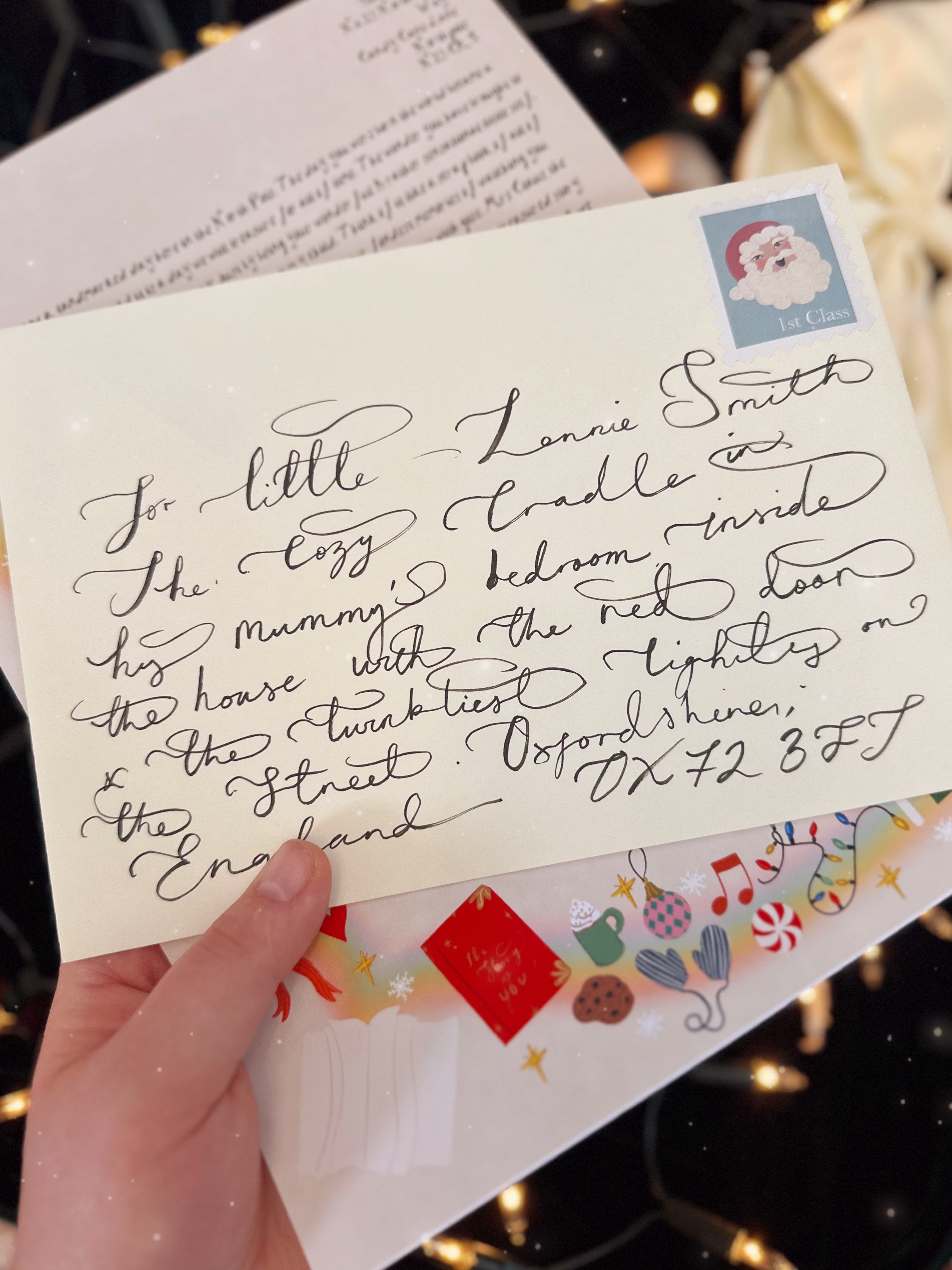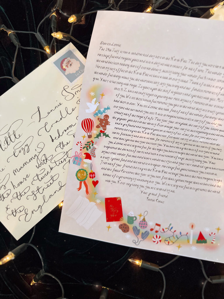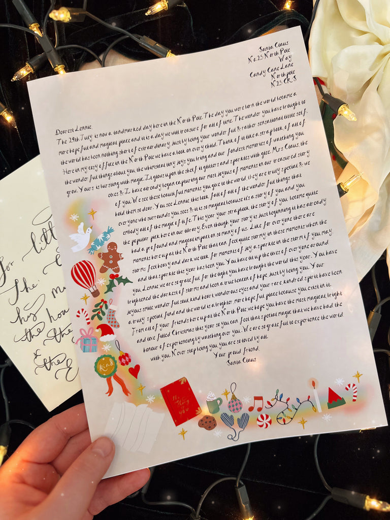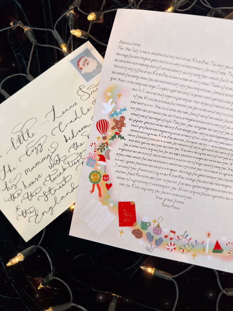 The letter comes with a hand-addressed ivory A5 envelope personalised to the addressee with their name and a Santa stamp.