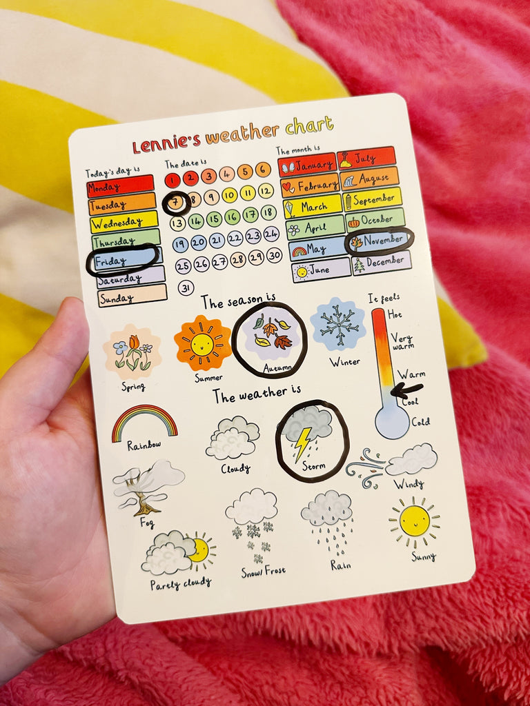 Our personalised weather boards are the perfect tool to help your littles connect with nature and encourage a moment of mindfulness.