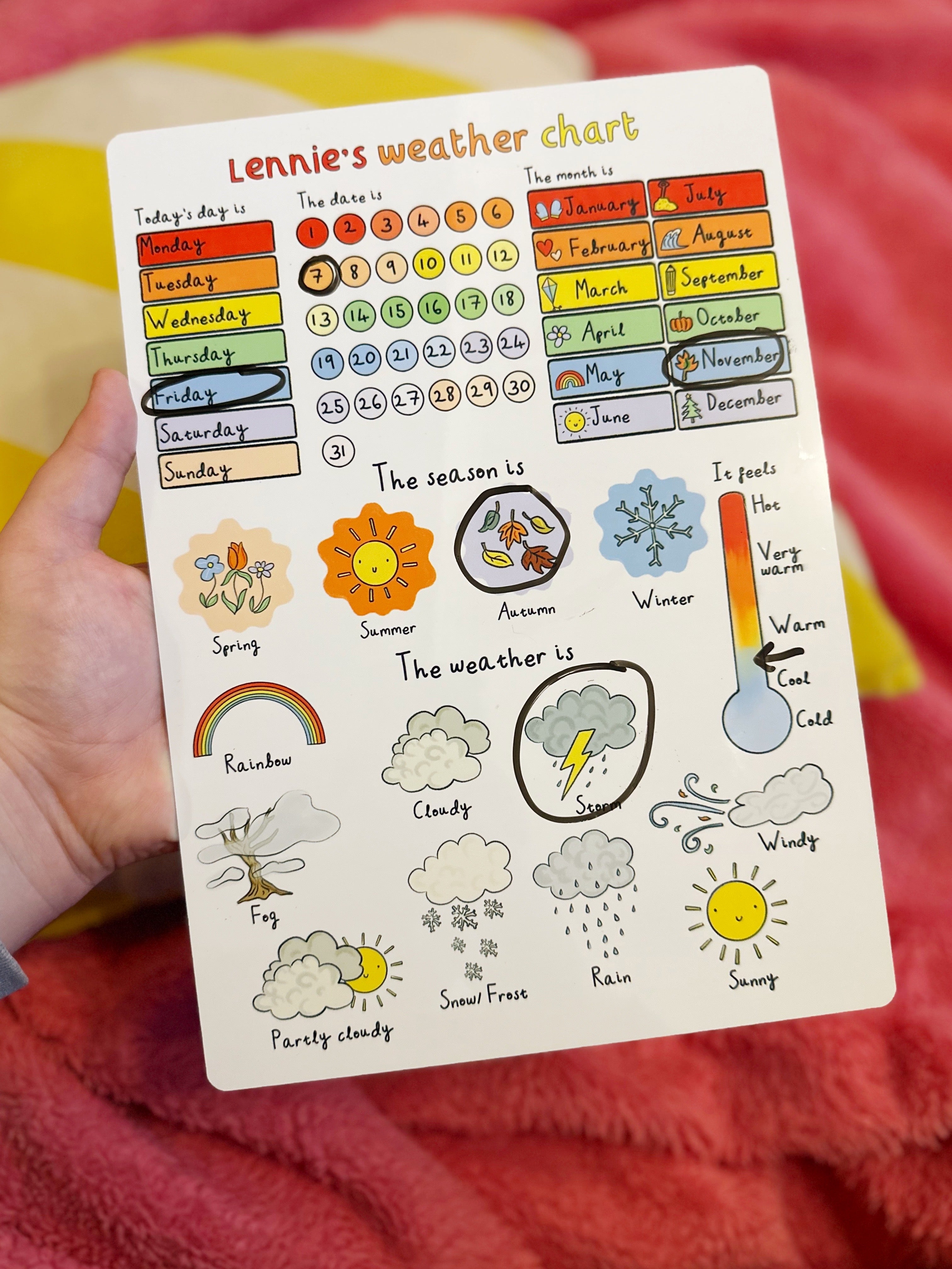 Our personalised weather boards are the perfect tool to help your littles connect with nature and encourage a moment of mindfulness.